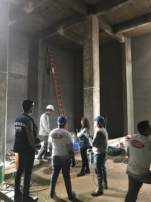 Para ello, se recomendó una solución consistente en una capa de Xypex Concentrado para la losa fondo, muros, columnas y cárcamos, seguido de una segunda capa de Xypex Modificado en todas las superficies. Es importante destacar que hubo necesidad de aplicar Xypex Patch’n Plug en todas las juntas frías, constructivas y zonas críticas que presentaban degradación en la superficie.